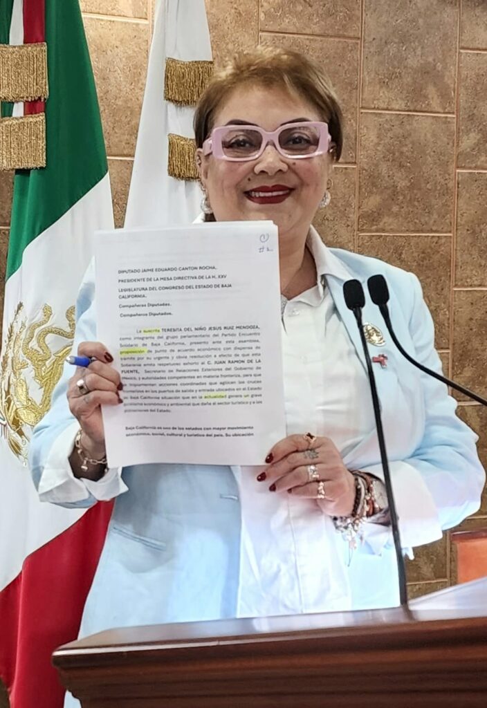 Mexicali, B.C., lunes 27 de octubre de 2025.- Con el objetivo de agilizar los cruces fronterizos en los puertos de salida y entrada del estado, la diputada Teresa Teresita del Niño Jesús Ruiz Mendoza emitió un respetuoso exhorto al C. Juan Ramón de la Fuente, secretario de Relaciones Exteriores del Gobierno de México, y a las instancias competentes en materia fronteriza, solicitando coordinación con sus contrapartes en Estados Unidos de América.